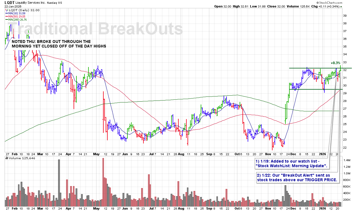 THU 1/22: LQDT – Broke Out Through the Morning Yet Closed Off of the Day Highs