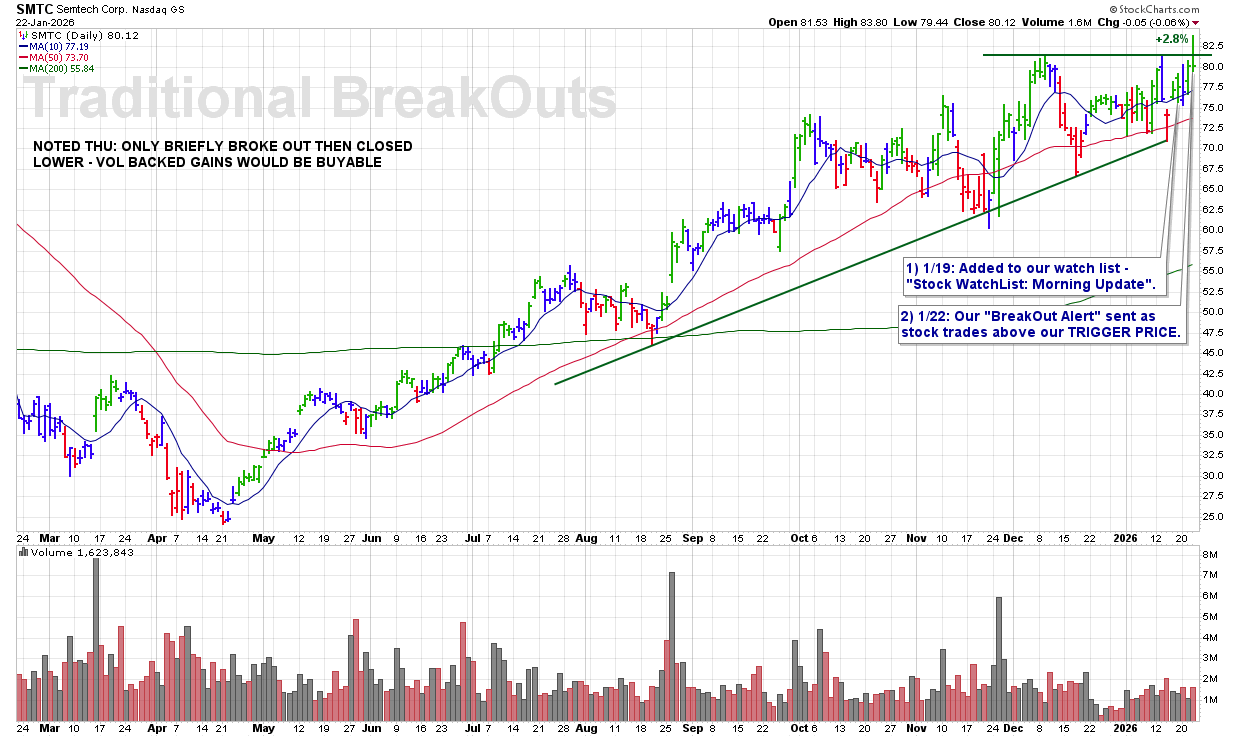 THU 1/22: SMTC – Only Briefly Broke Out then Closed Lower – Volume Backed Gains Would be Buyable