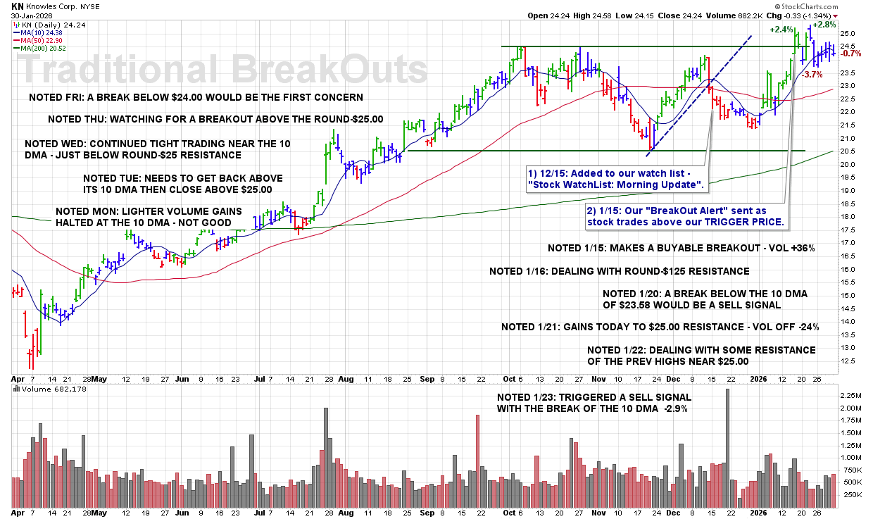FRI 1/30: KN – A Break Below $24.00 Would Be the First Concern