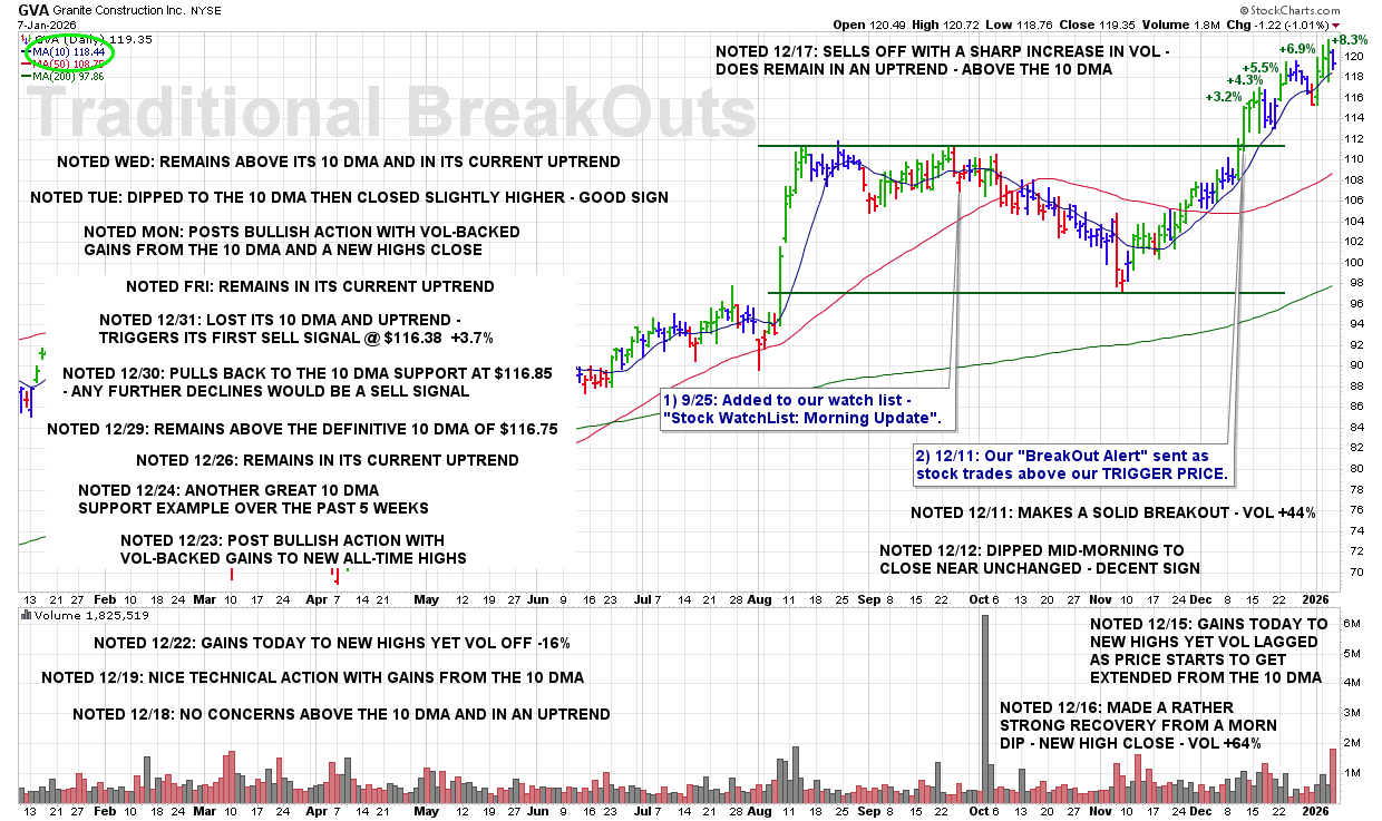 WED 1/7: GVA – Remains Above Its 10 DMA and in Its Current Uptrend