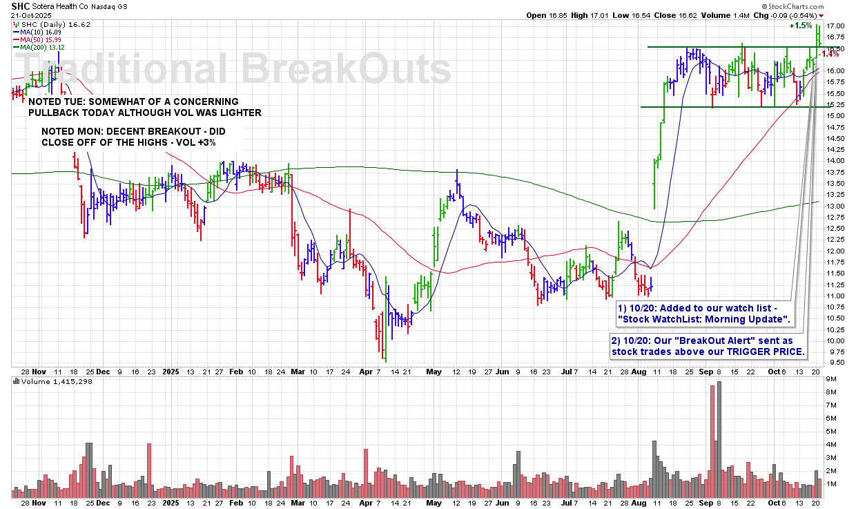 TUE 10/21: SHC – Somewhat of a Concerning Pullback Today Although Volume was LighterDecent Breakout – Did Close Off of the Highs – Volume +3%
