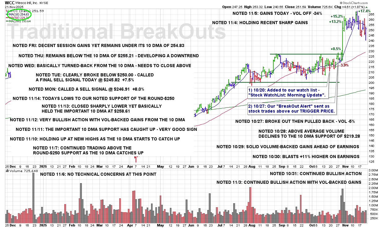 FRI 11/21: WCC – Decent Session Gains Yet Remains Under its 10 DMA of 254.83
