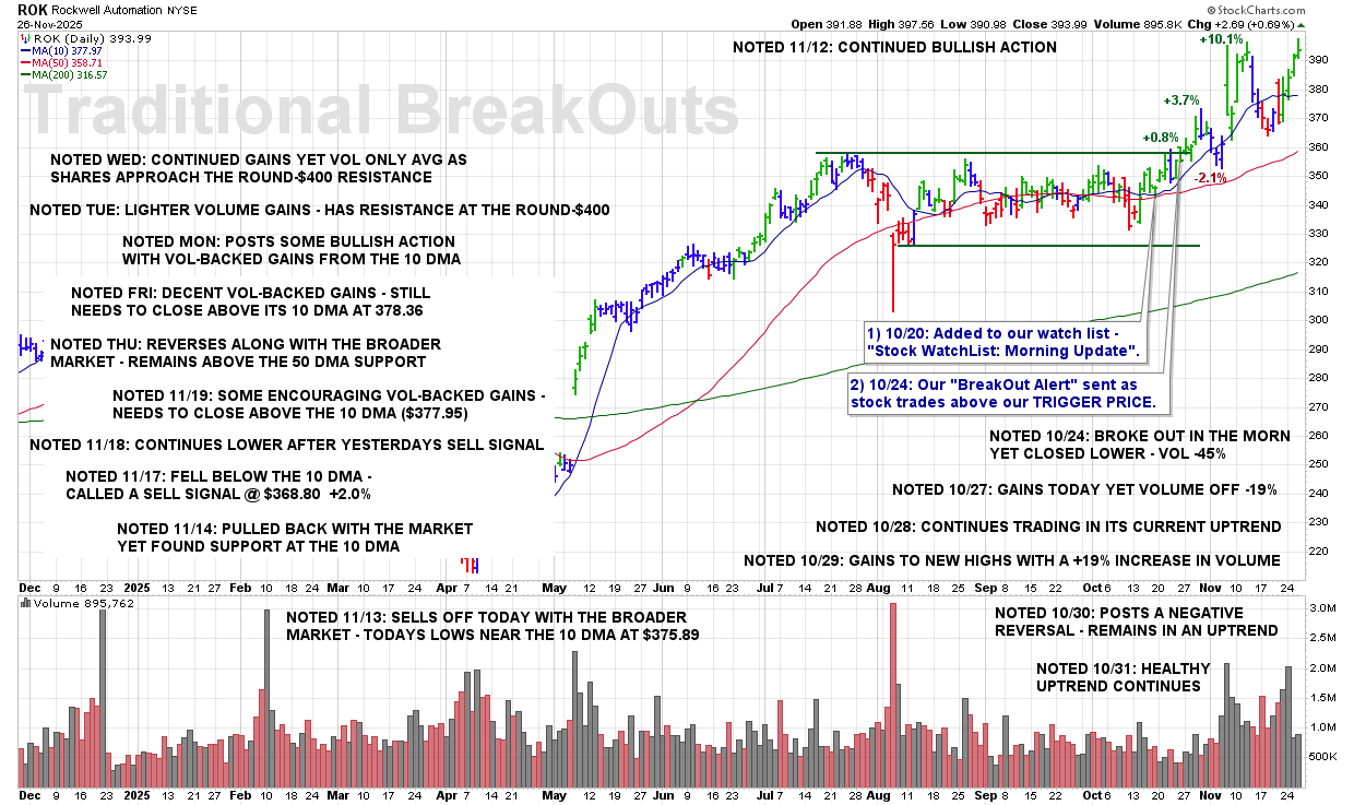 WED 11/26: ROK – Continued Gains Yet Volume Only Average as Shares Approach the Round-$400 Resistance