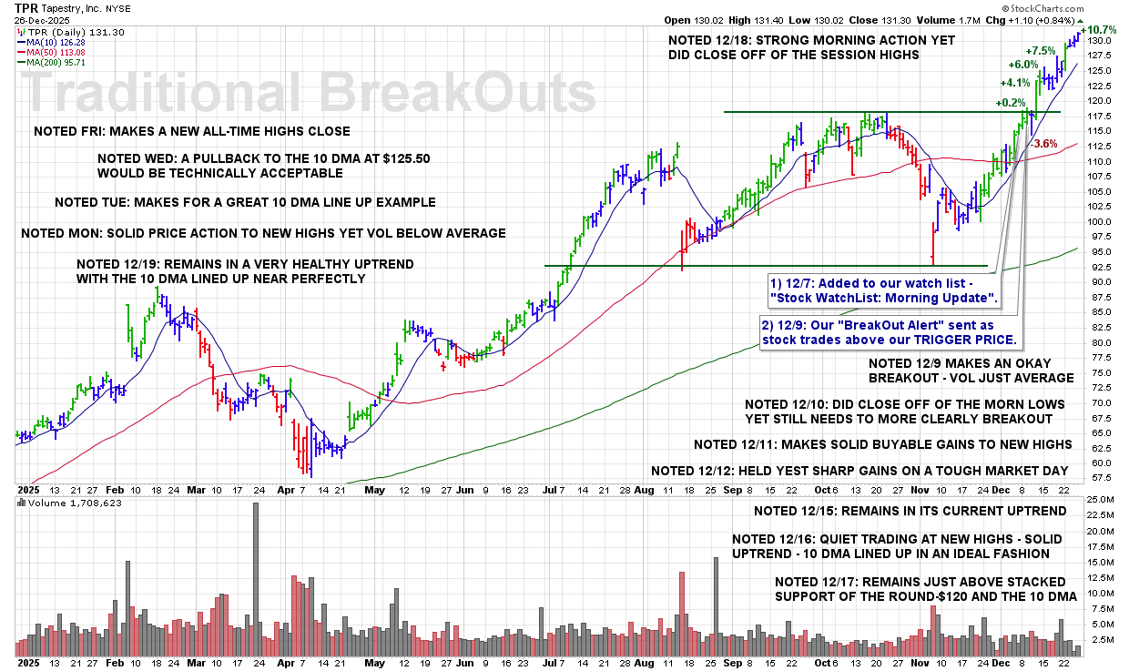FRI 12/26: TPR – Makes a New All-Time Highs Close