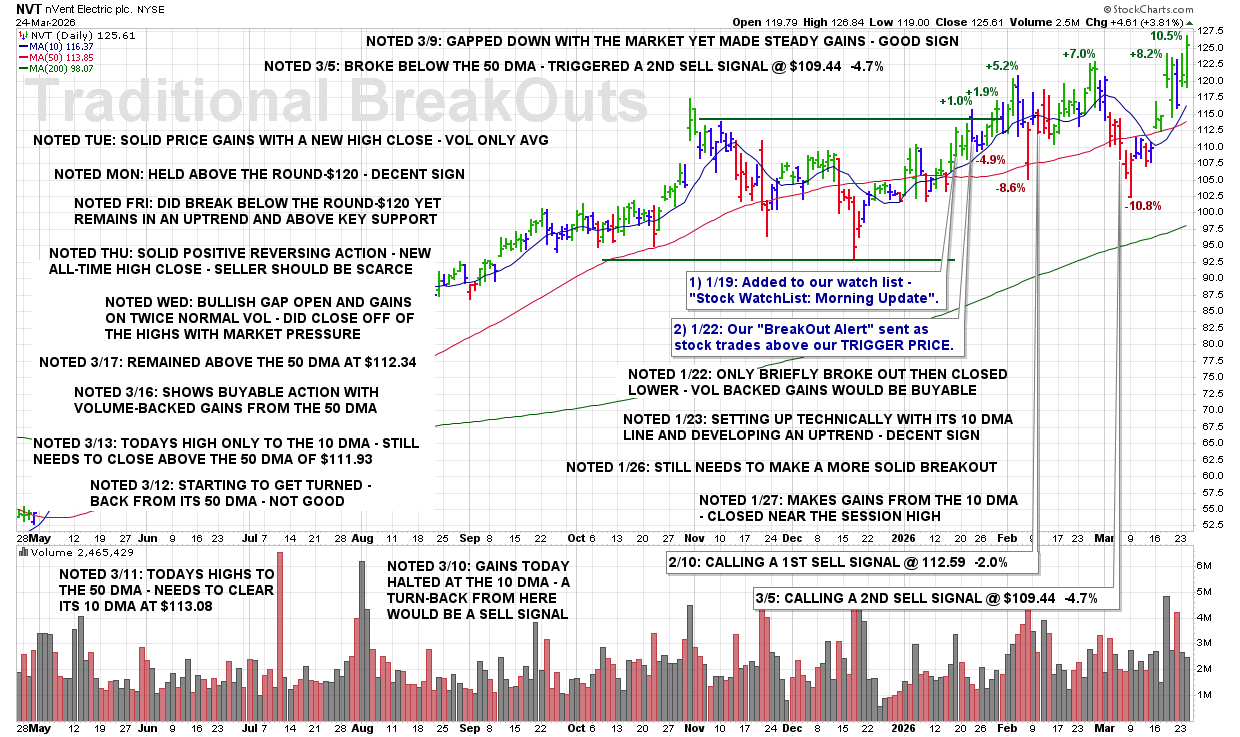 TUE 3/24: NVT – Solid Price Gains With a New High Close – Volume Only Average