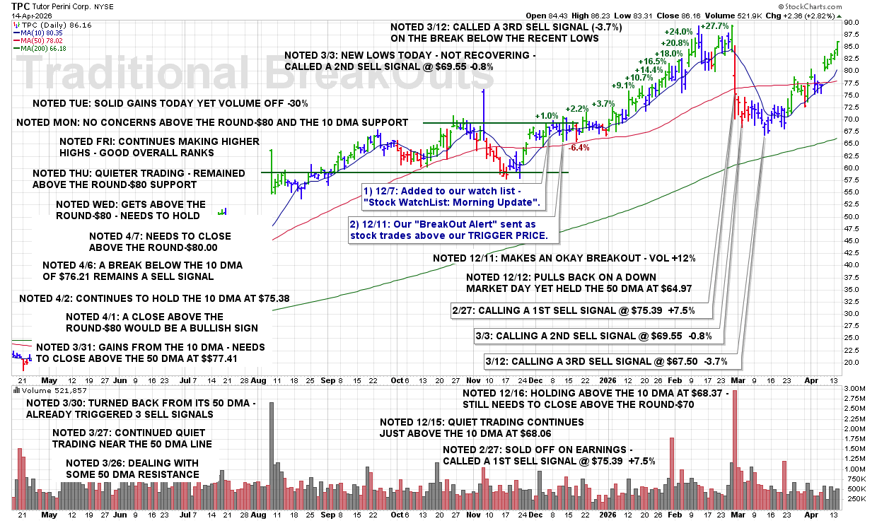 TUE 4/14: TPC – Solid Gains Today Yet Volume Off -30%