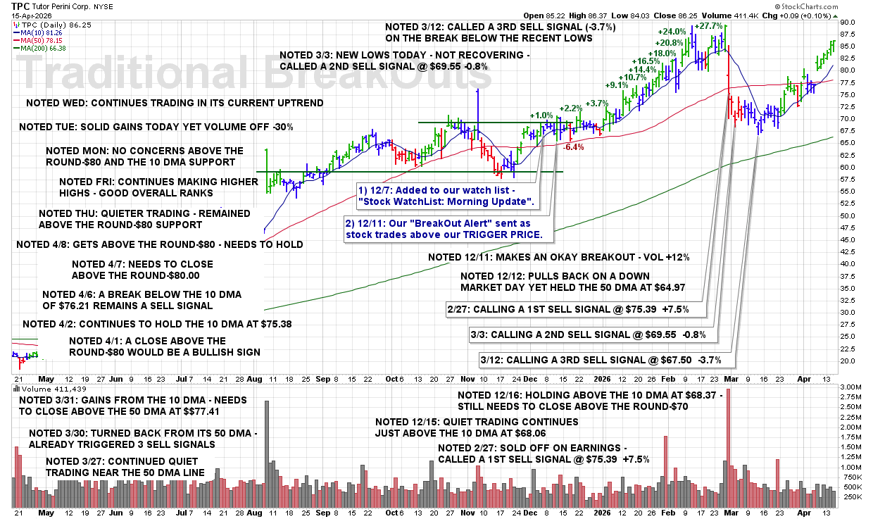 WED 4/15: TPC – Continues Trading in Its Current Uptrend