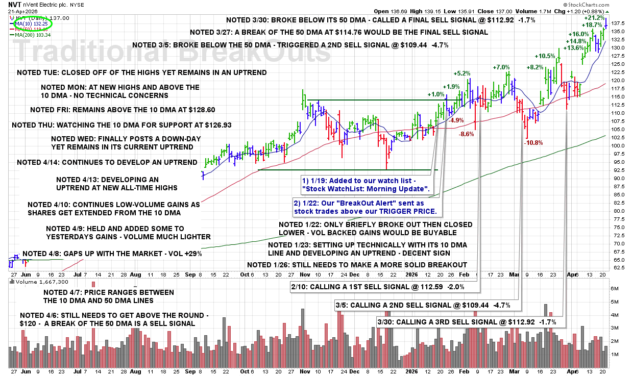 TUE 4/21: NVT – Closed Off of the Highs Yet Remains in an Uptrend
