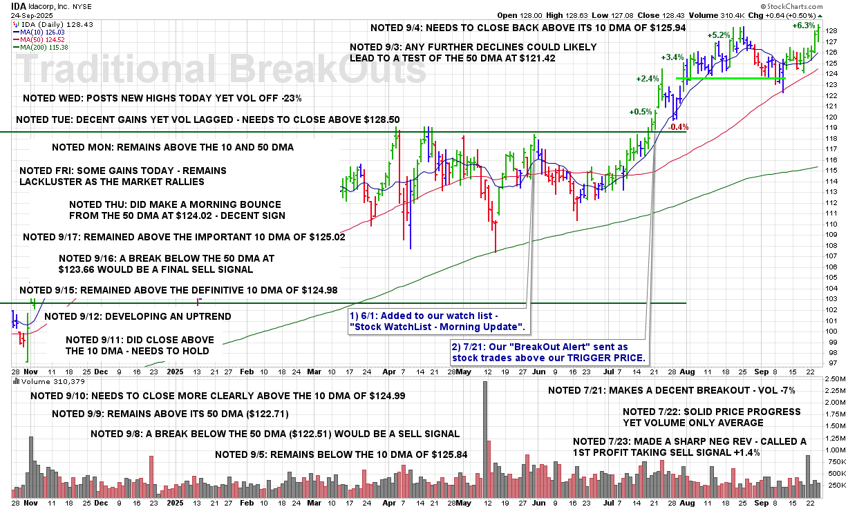 WED 9/24: IDA – Posts New Highs Today Yet Vol Off -23%