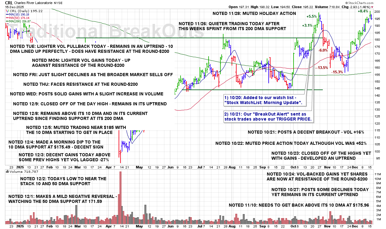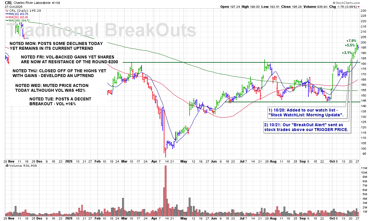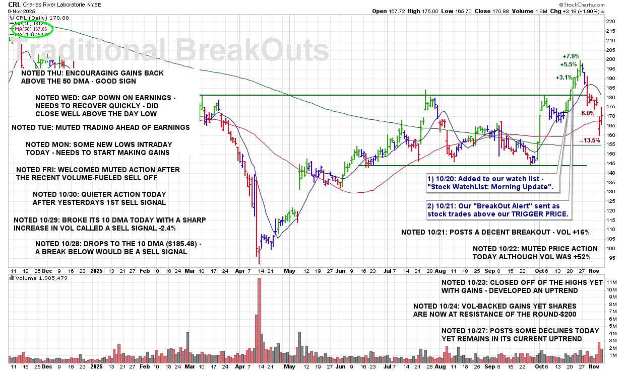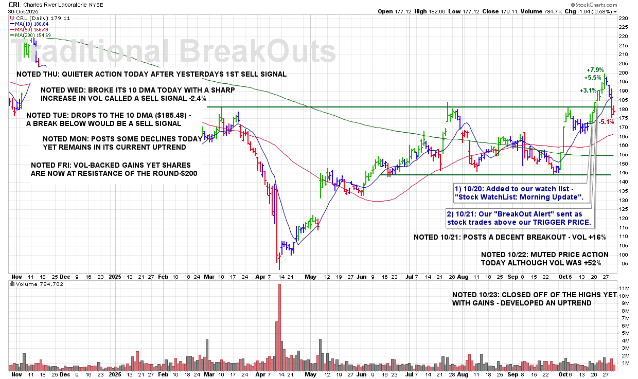 WED 10/29: CRL – CALLING A SELL SIGNAL @ $180.50 -2.4%