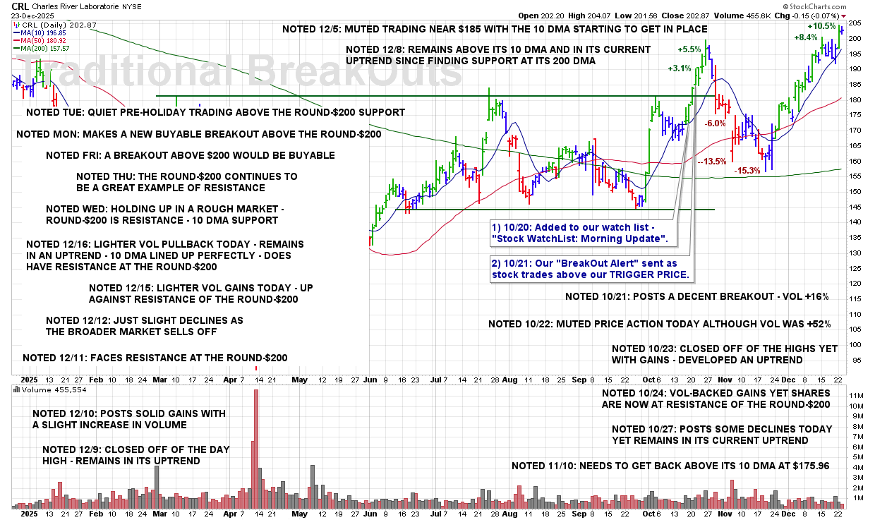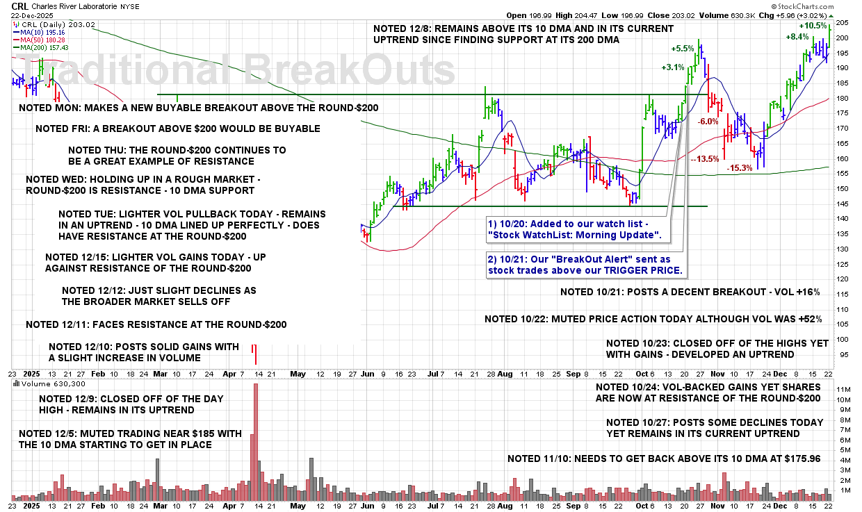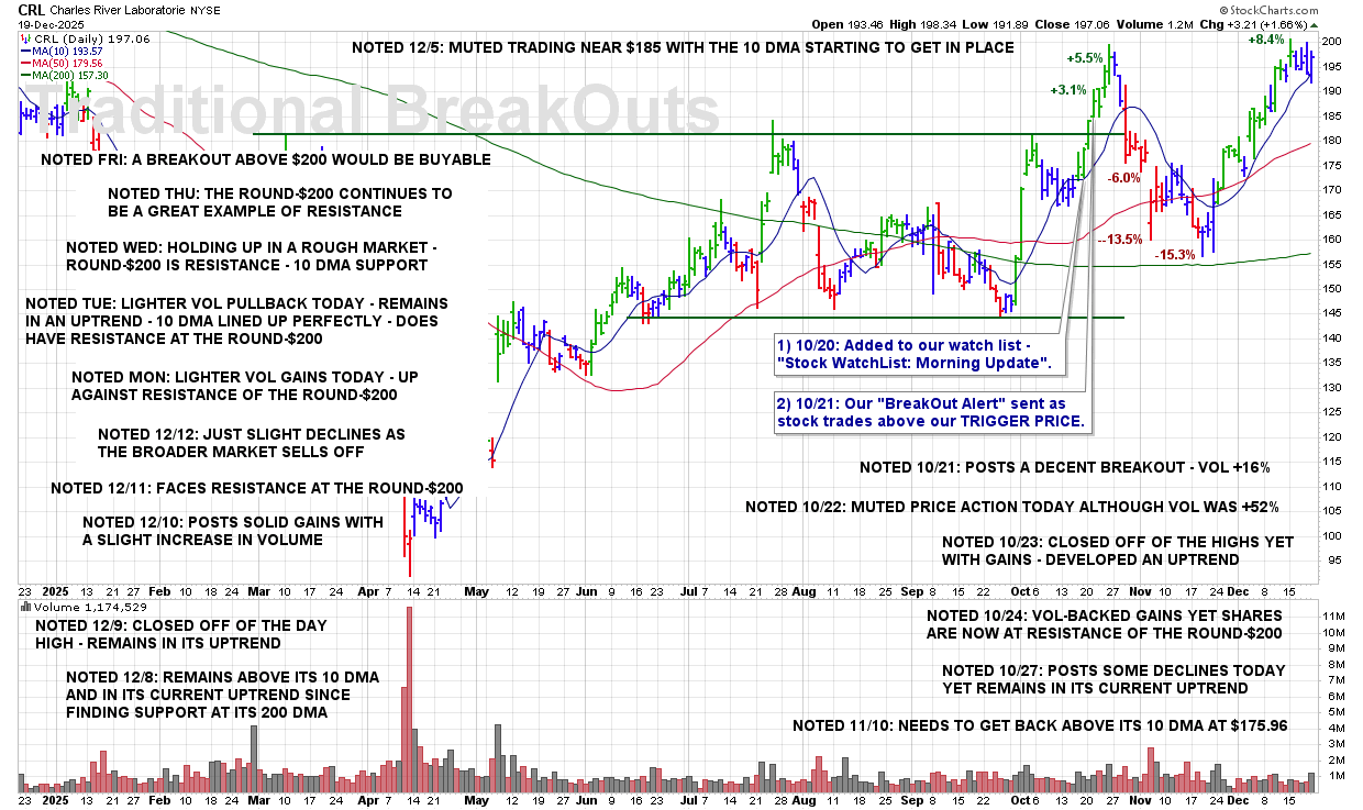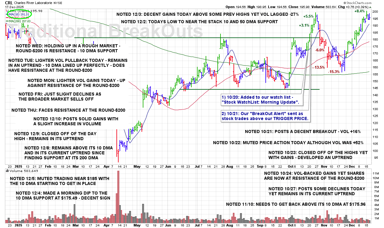 WED 10/29: CRL – CALLING A SELL SIGNAL @ $180.50 -2.4%