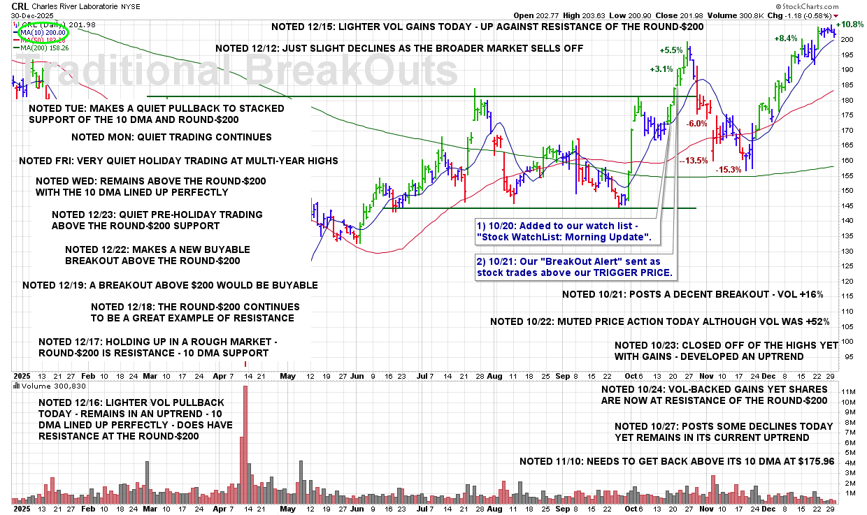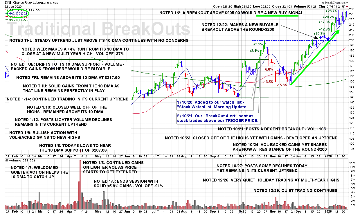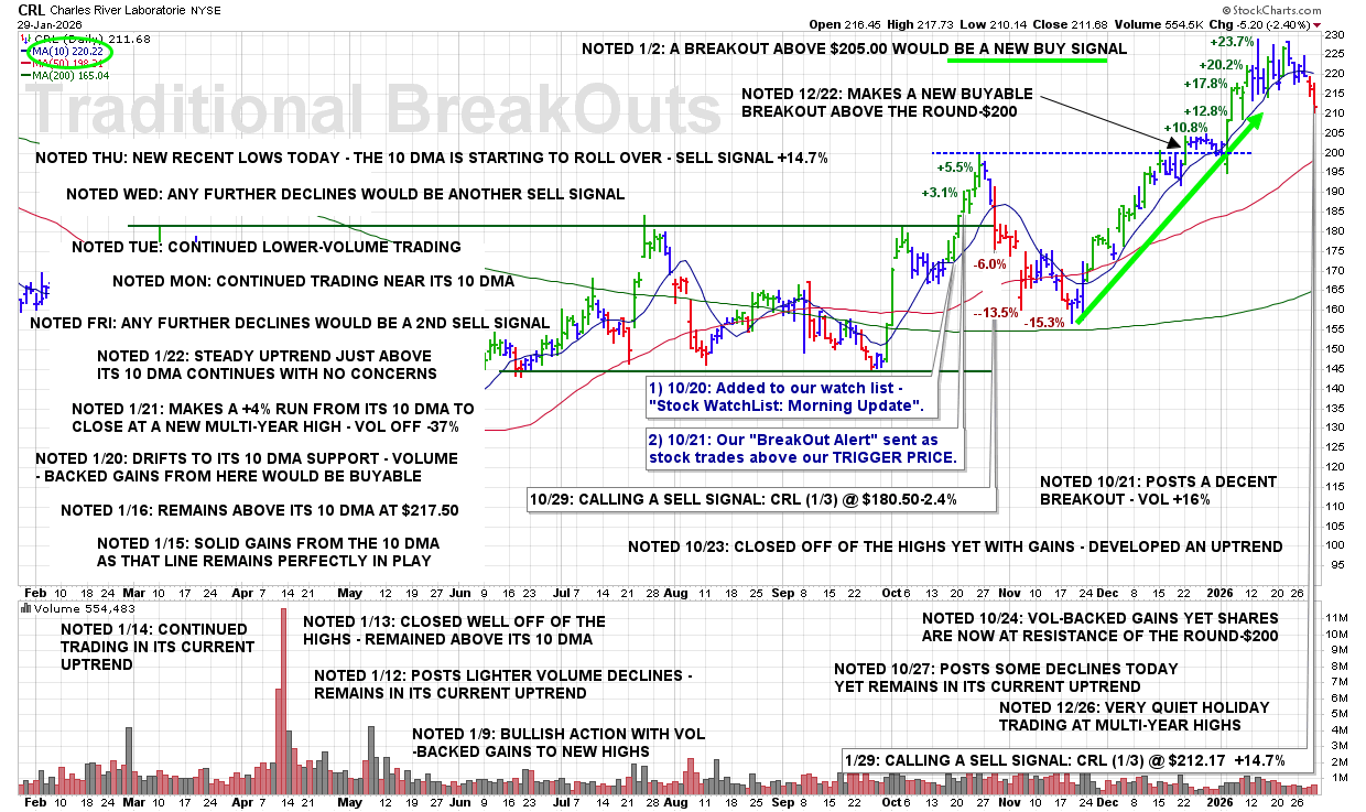 THU 1/29: CRL – CALLING A 2ND SELL SIGNAL @ $212.17 +14.7%