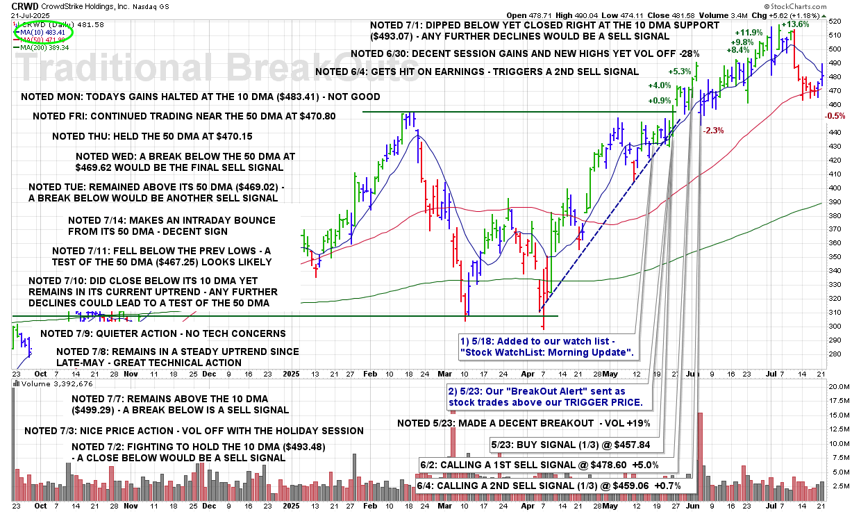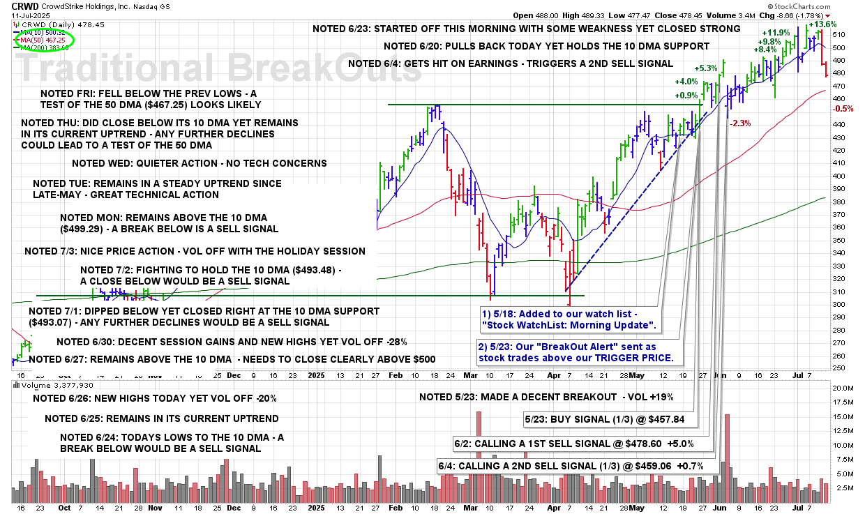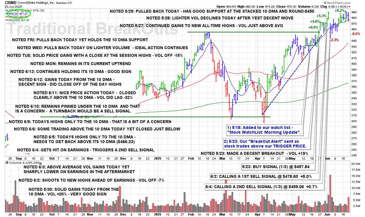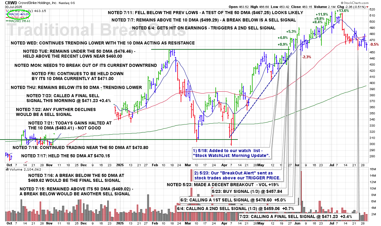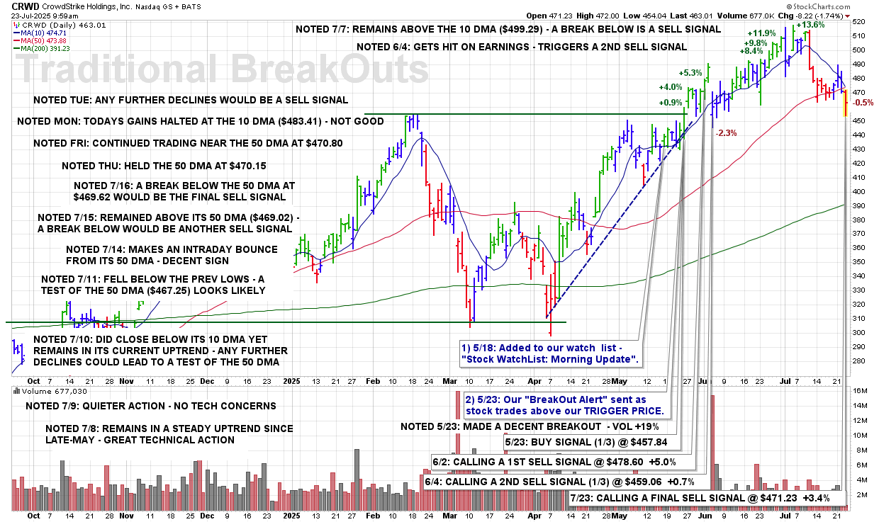 WED 7/23: CRWD – CALLING A FINAL SELL SIGNAL @ $471.23 +3.4%