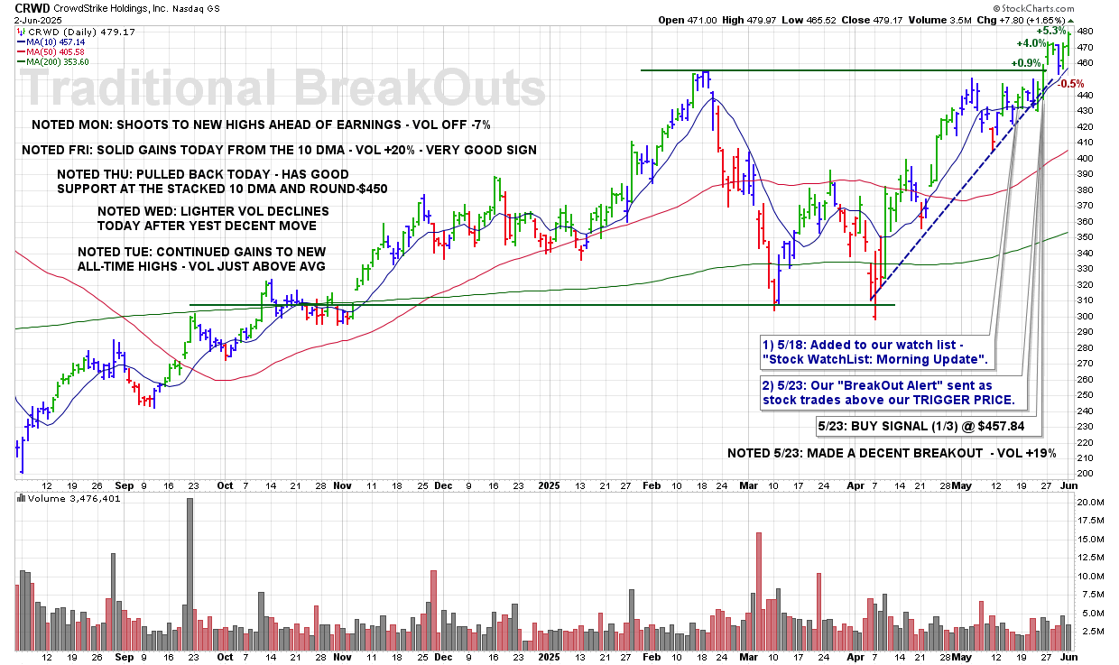 “…very nice set ups and breakouts based on the Investor Business Daily stock selection method.”