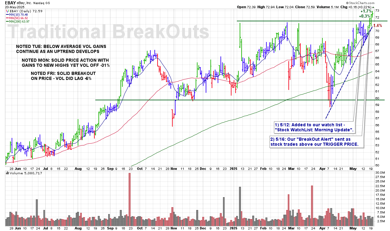 “…very nice set ups and breakouts based on the Investor Business Daily stock selection method.”
