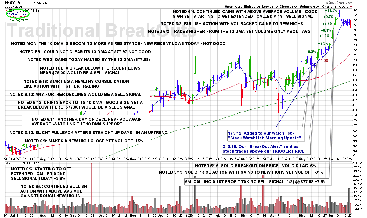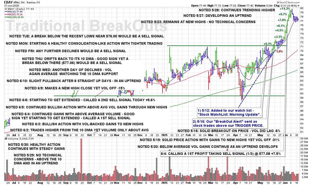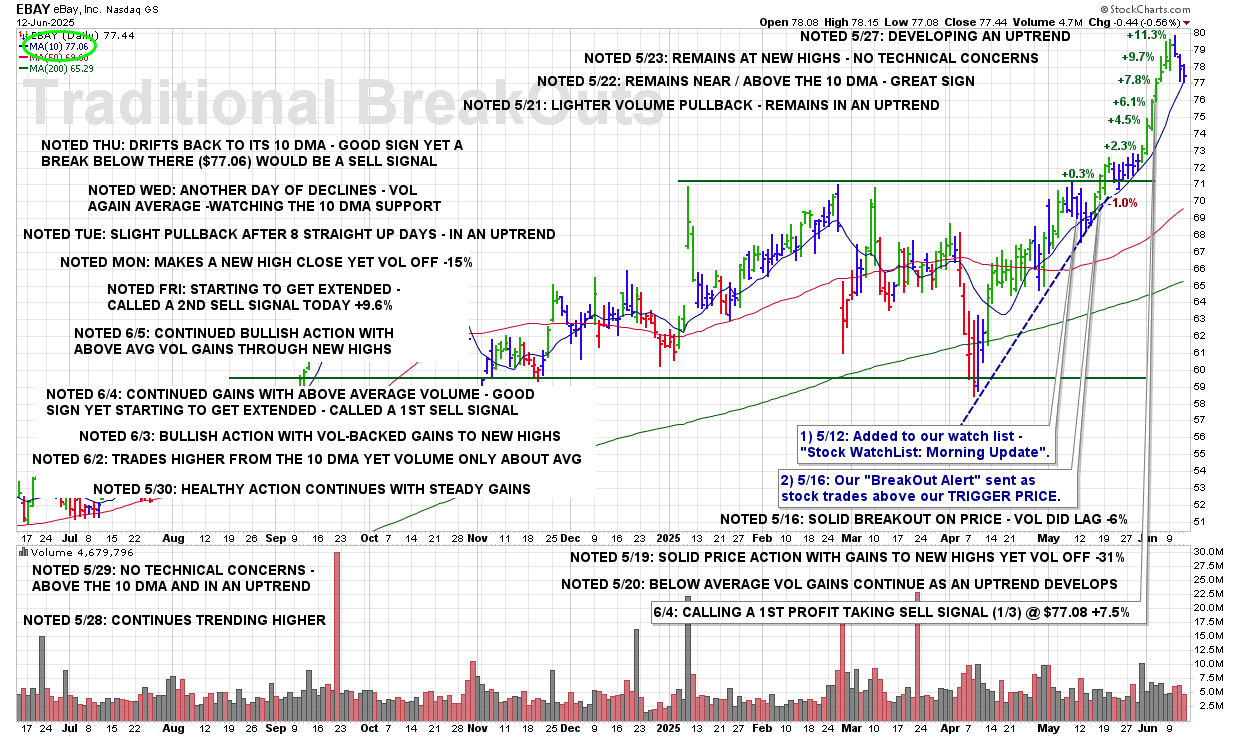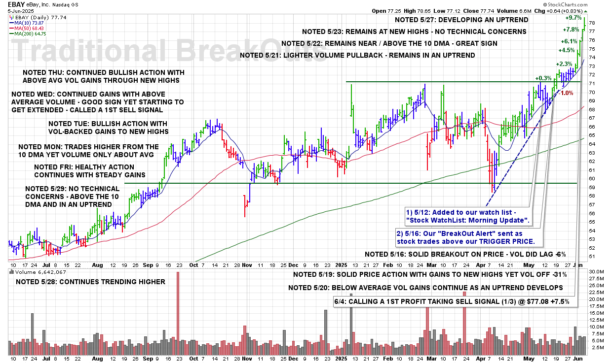 WED 6/4: EBAY – CALLING A 1ST PROFIT TAKING SELL SIGNAL (1/3) @ $77.08 +7.5%