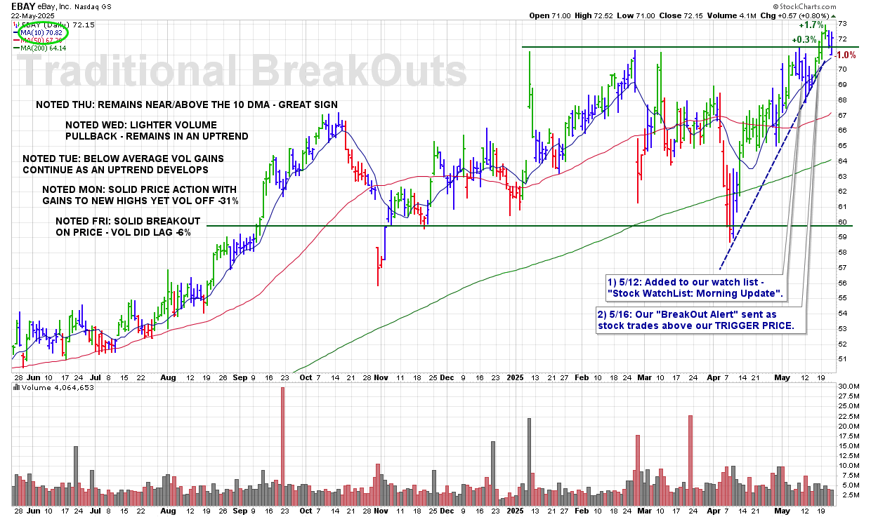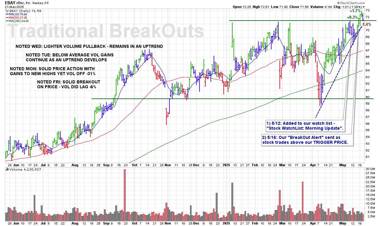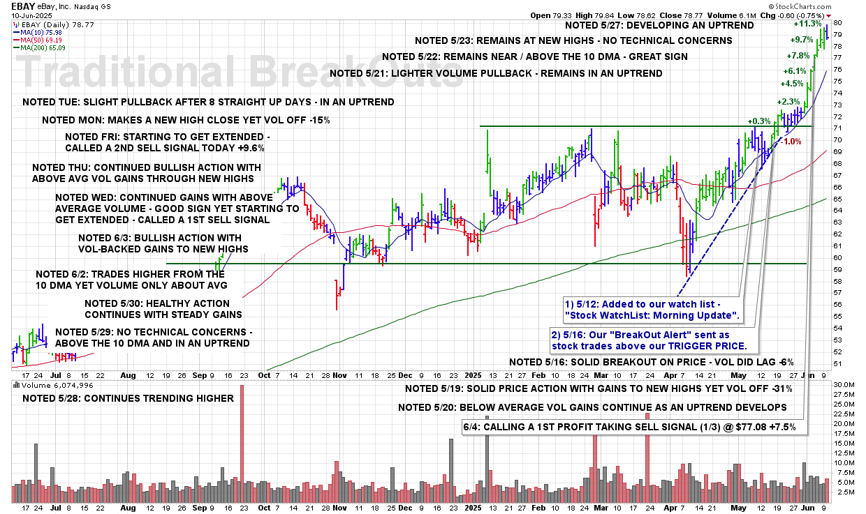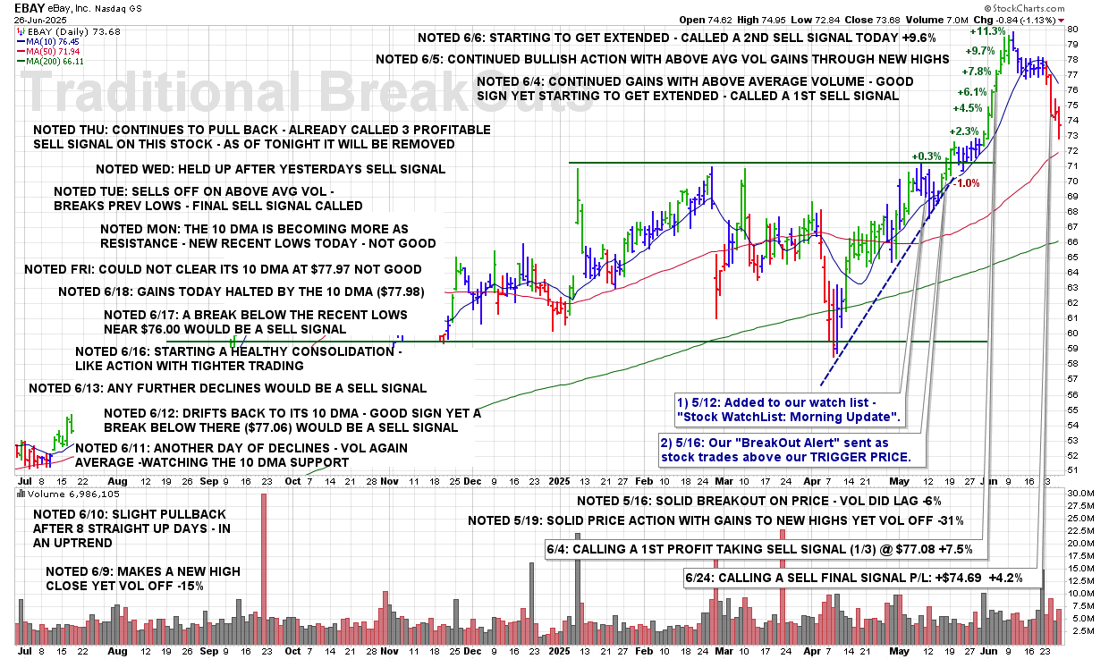 WED 6/4: EBAY – CALLING A 1ST PROFIT TAKING SELL SIGNAL (1/3) @ $77.08 +7.5%