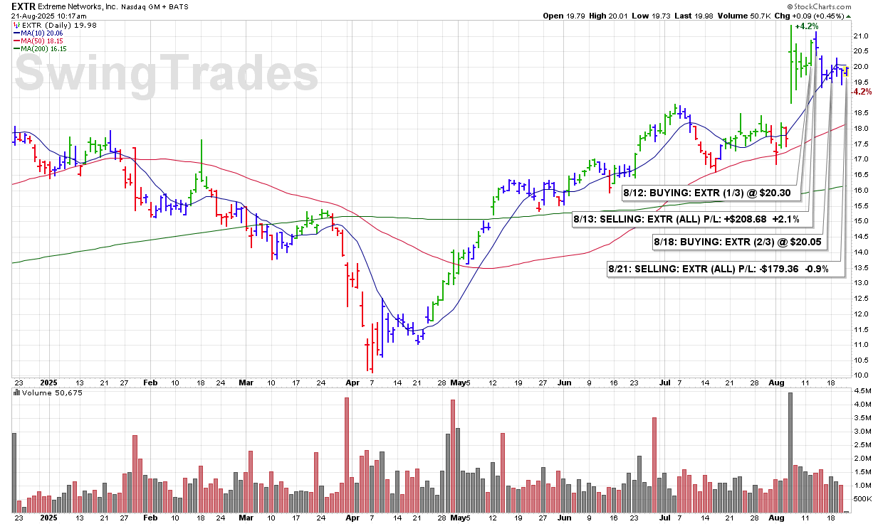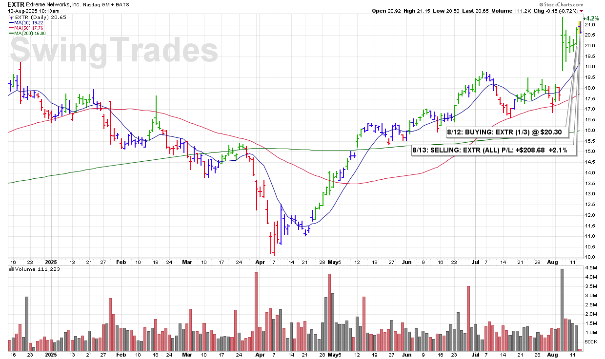 WED 8/13: SELLING: EXTR (ALL) P/L: +$208.68 +2.1%