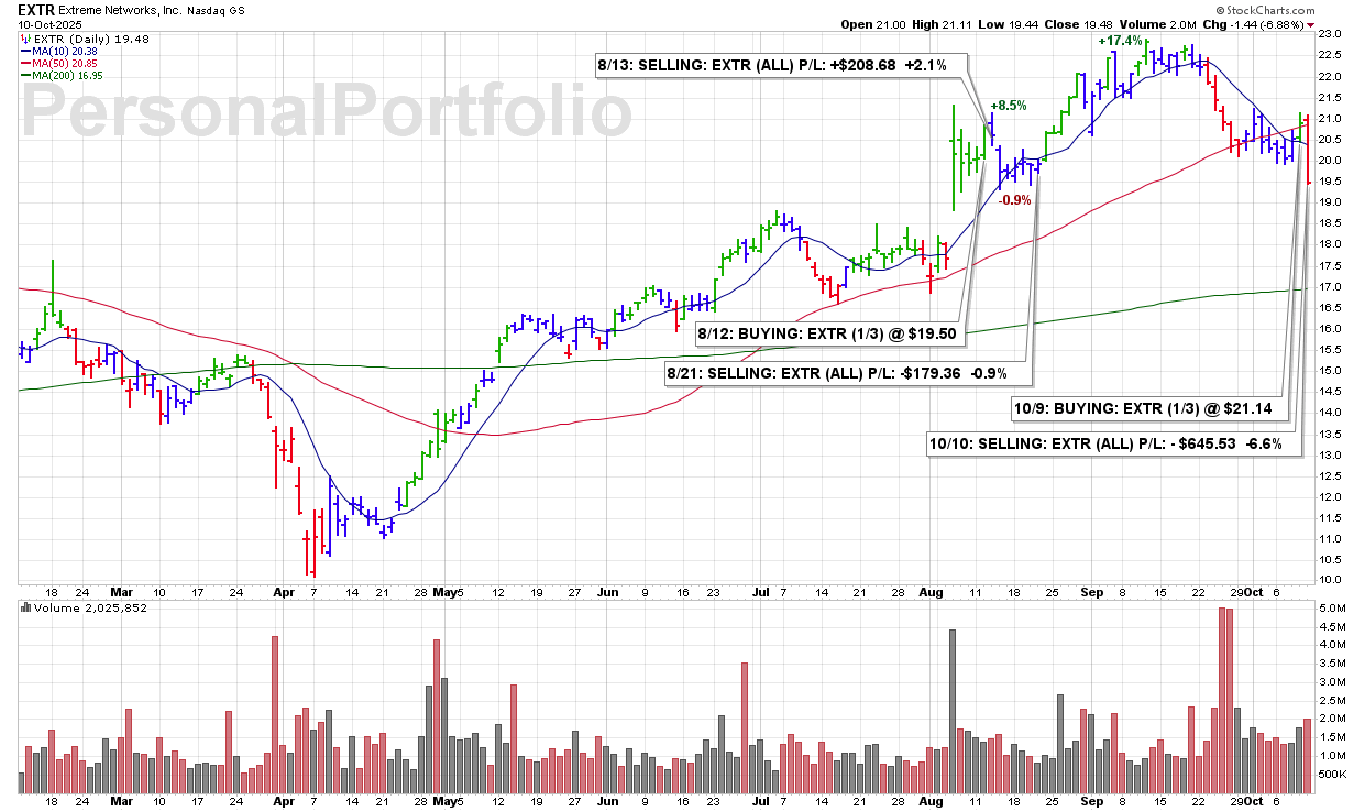 FRI 10/10: EXTR – SELLING (ALL) P/L: -$645.53 -6.6%