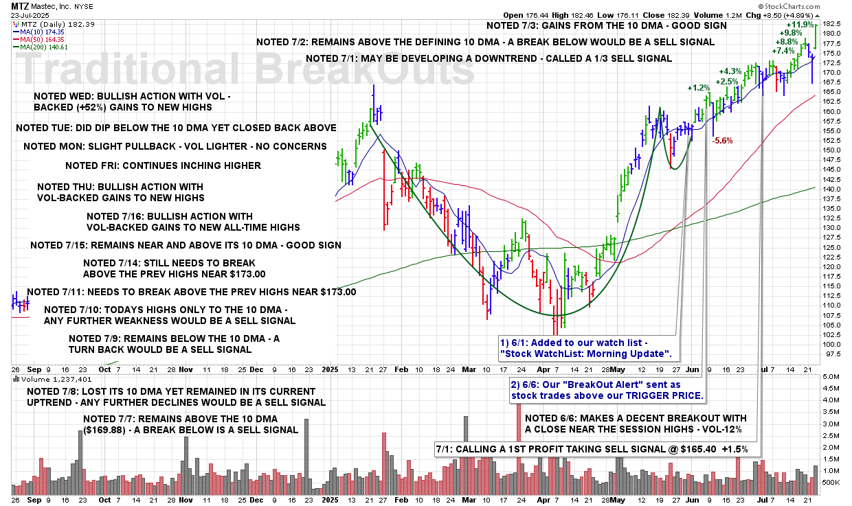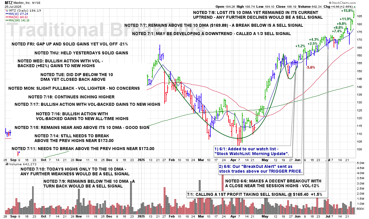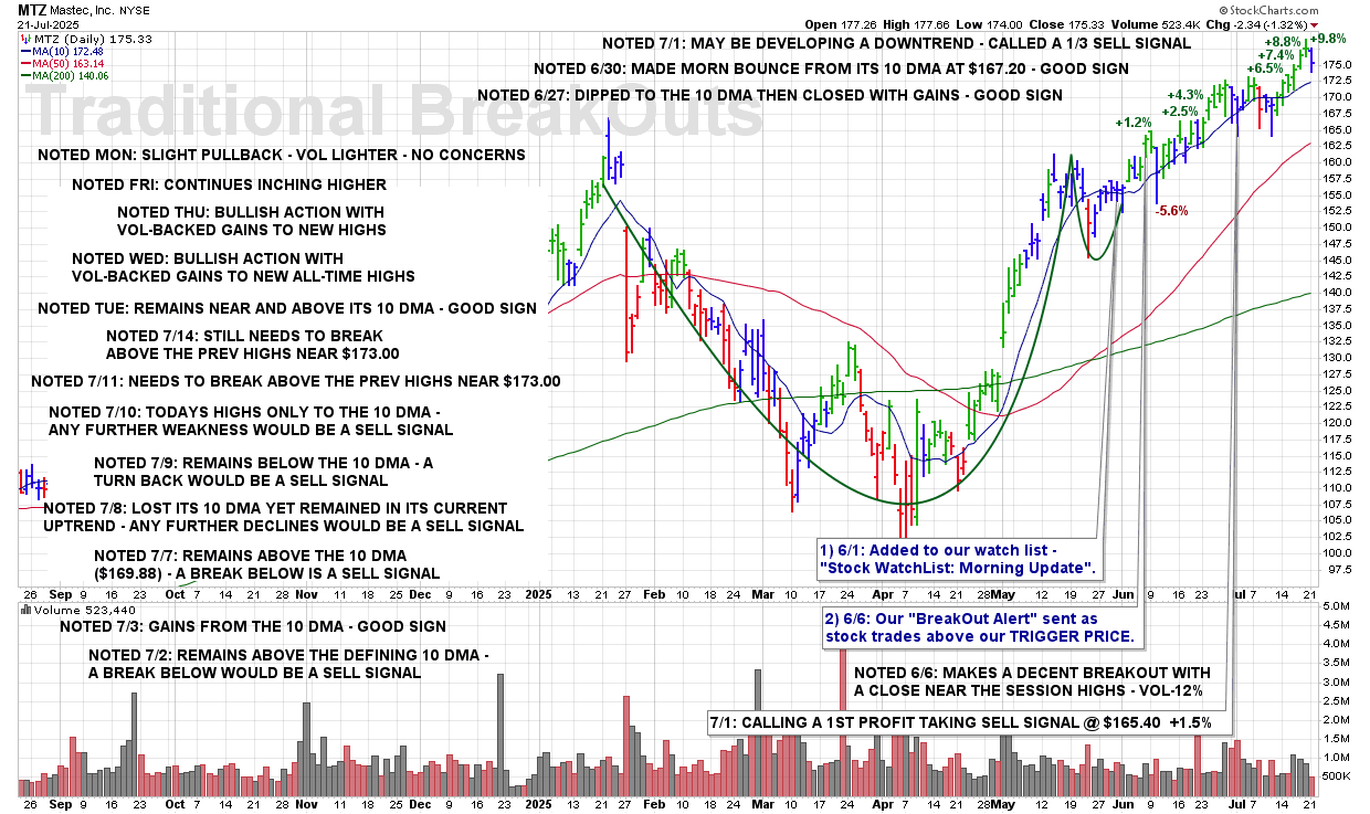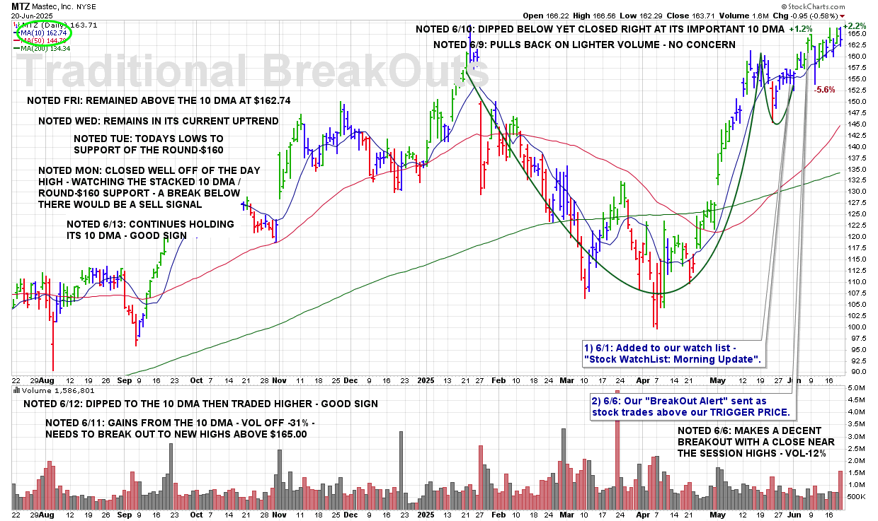 TUE 8/19: MTZ – A Break Of The 50 DMA ($173.95) And This Stock Will Be Removed From Coverage