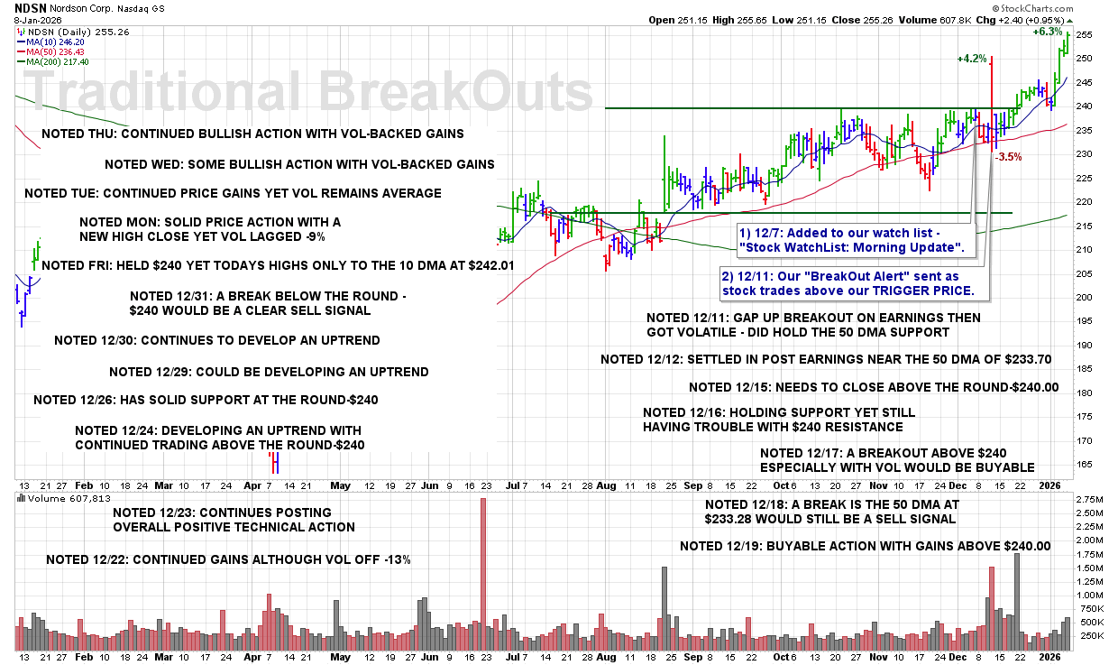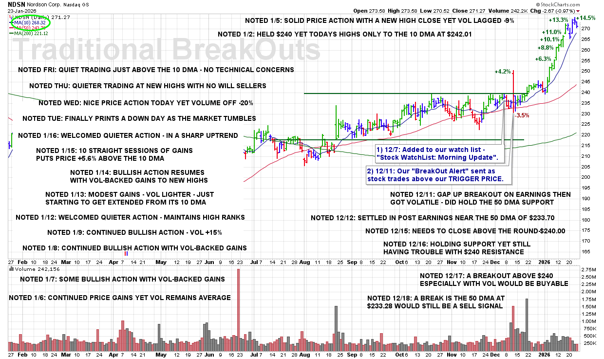 TUE 3/3: NDSN – CALLING A 3RD SELL SIGNAL @ $284.56 +18.3%