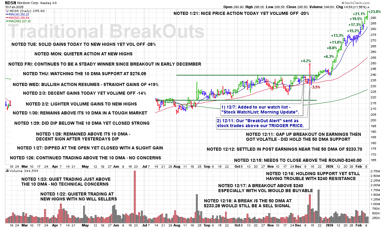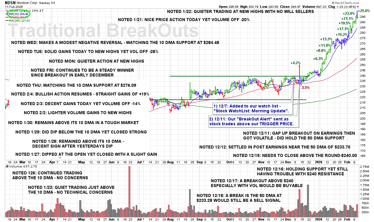 FRI 2/27: NDSN – CALLING A 2ND SELL SIGNAL @ $292.60 +21.6%