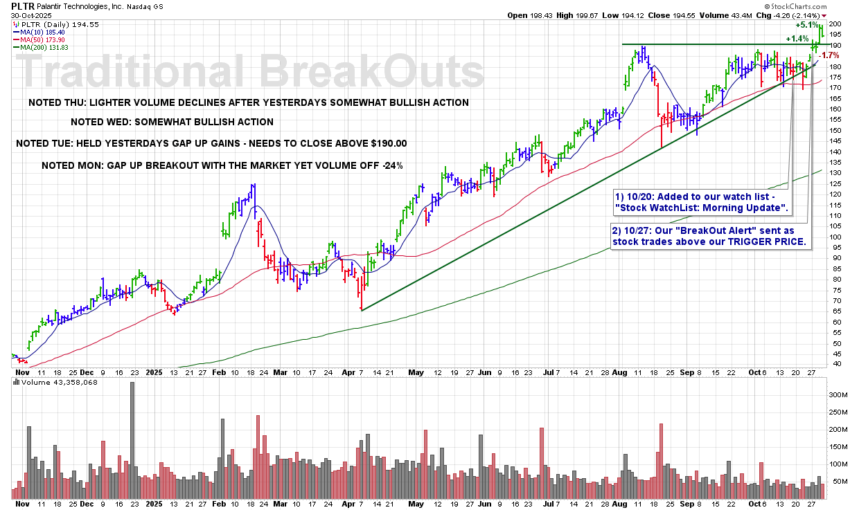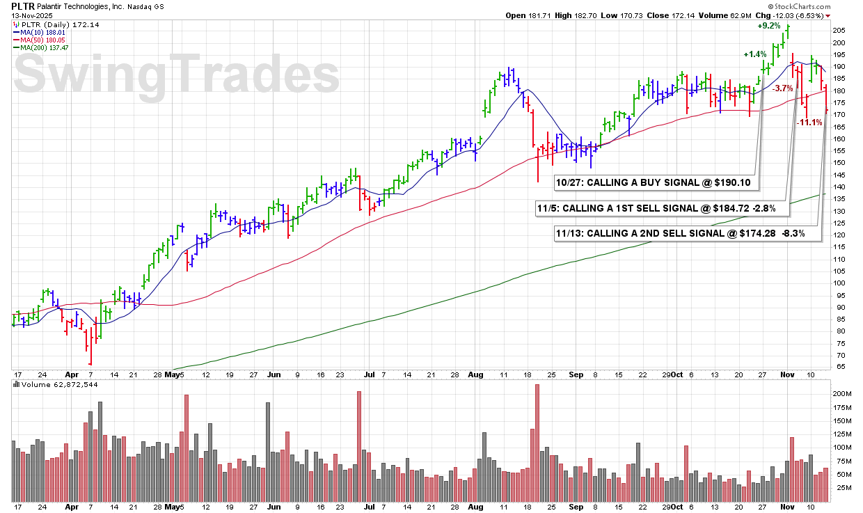 WED 11/5: PLTR – CALLING A 1ST SELL SIGNAL @ $184.72 -2.8%