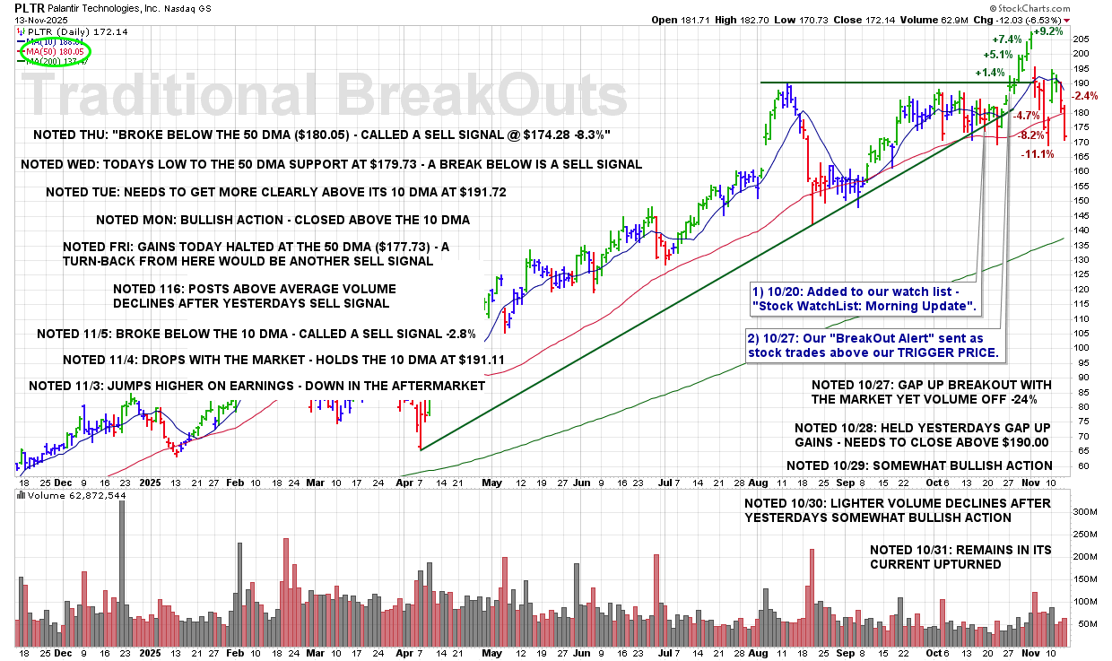 THU 11/13: PLTR – CALLING A 2ND SELL SIGNAL @ $174.28 -8.3%