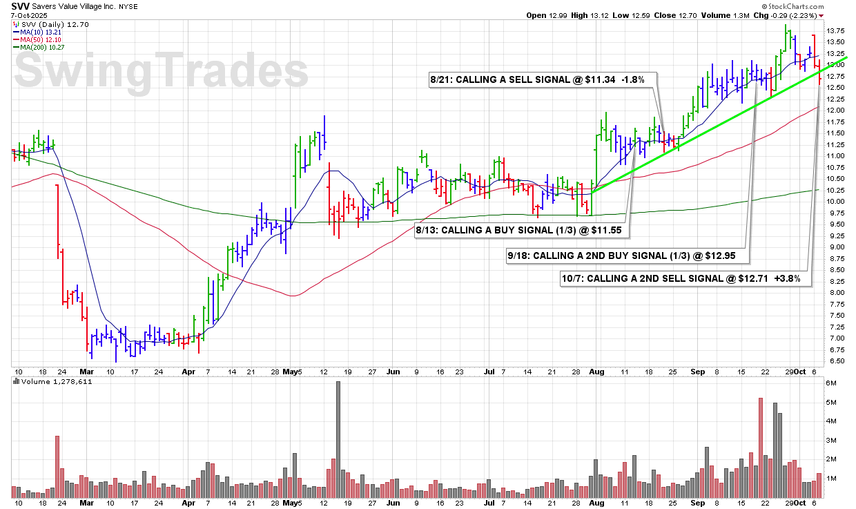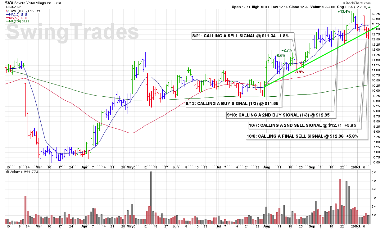 WED 10/8: SVV – CALLING A FINAL SELL SIGNAL @ $12.96 +5.8%