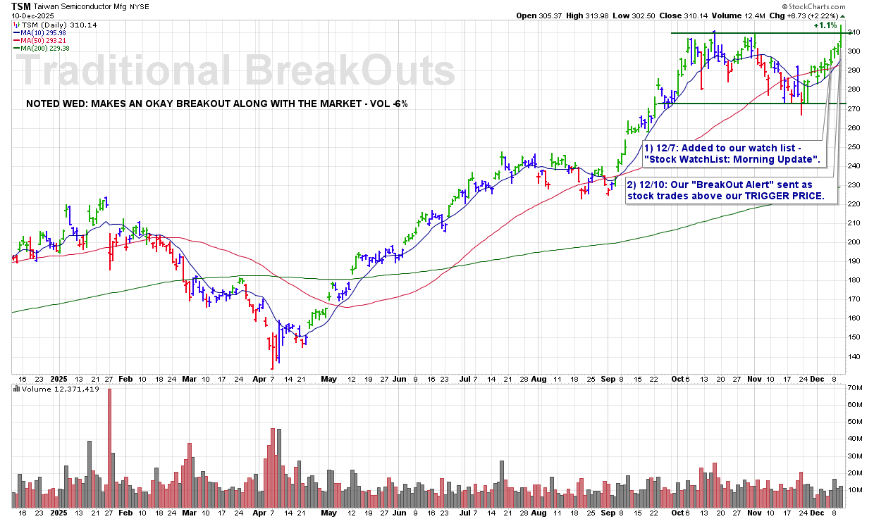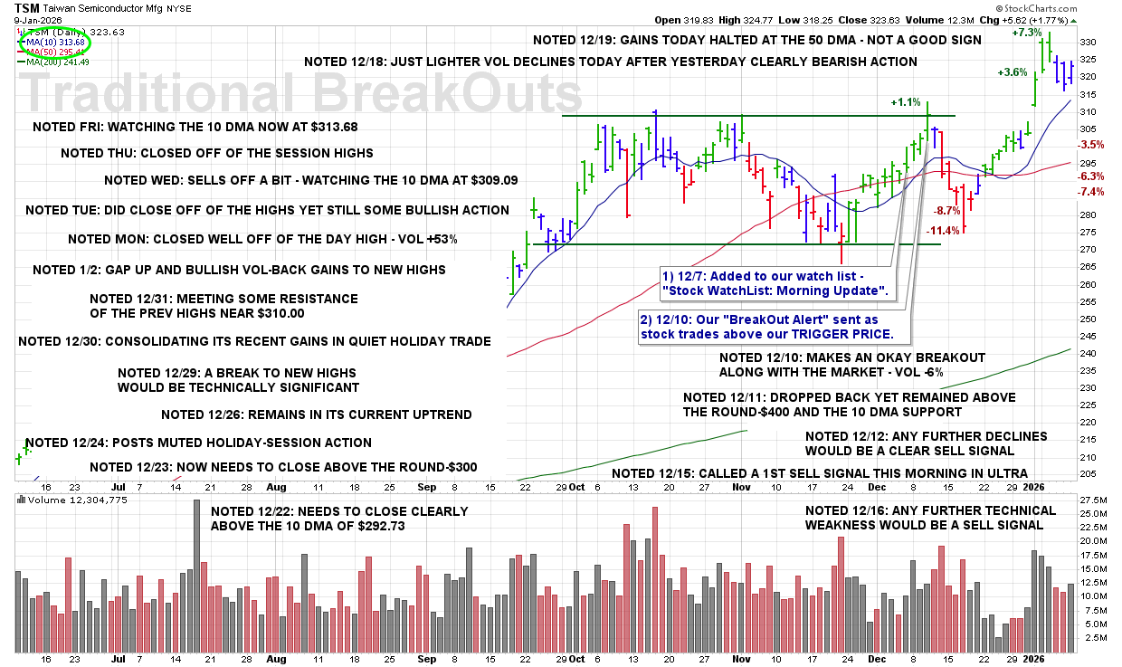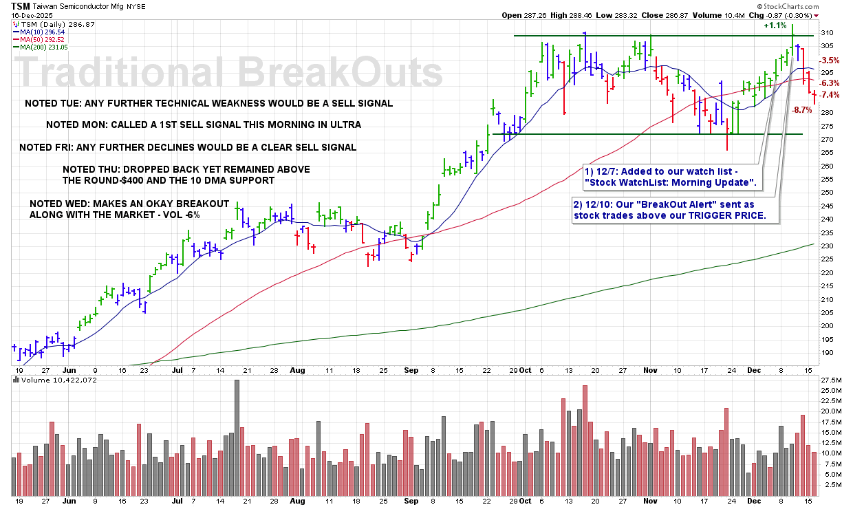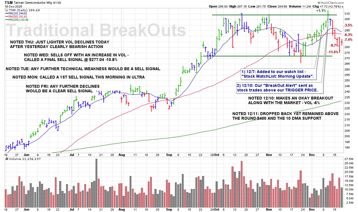 MON 12/15: TSM – CALLING A 1ST SELL SIGNAL @ $290.11 -6.5%