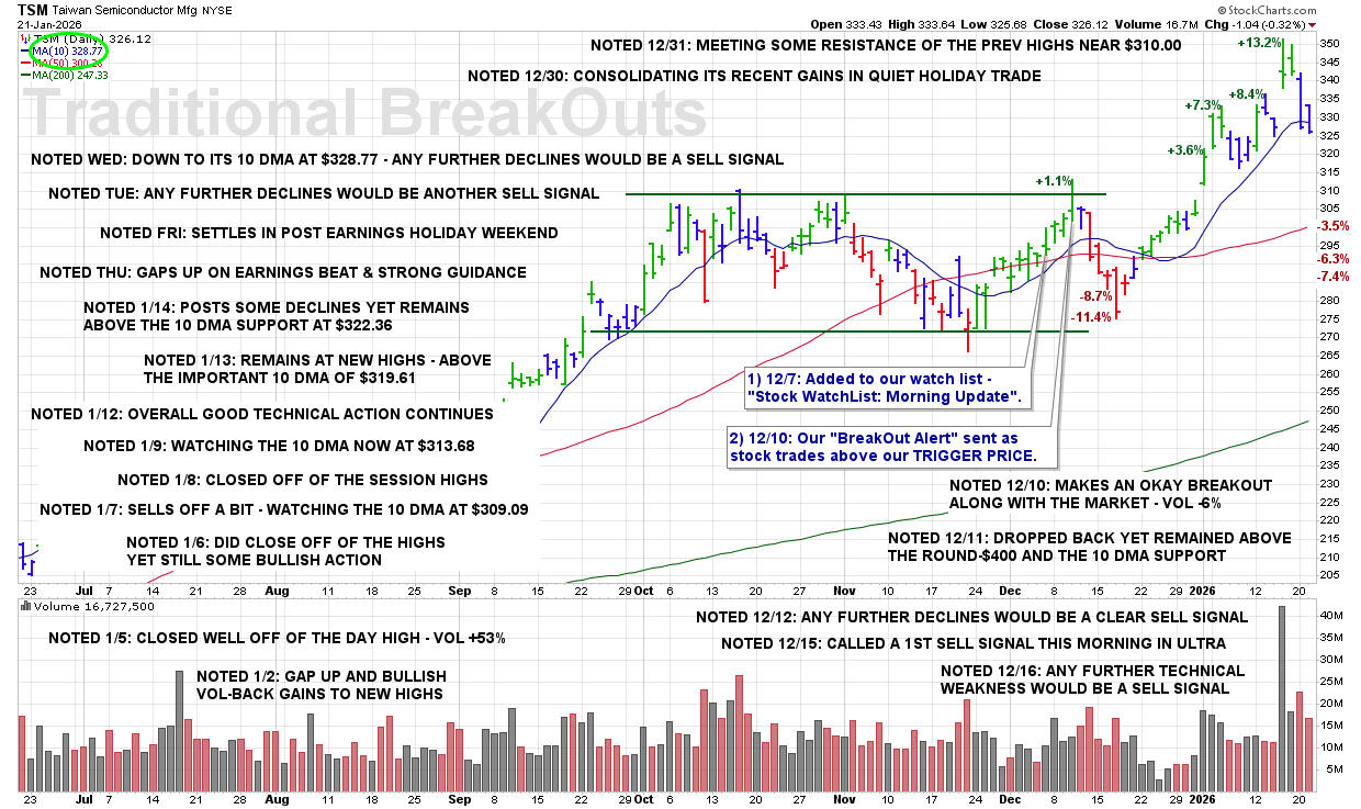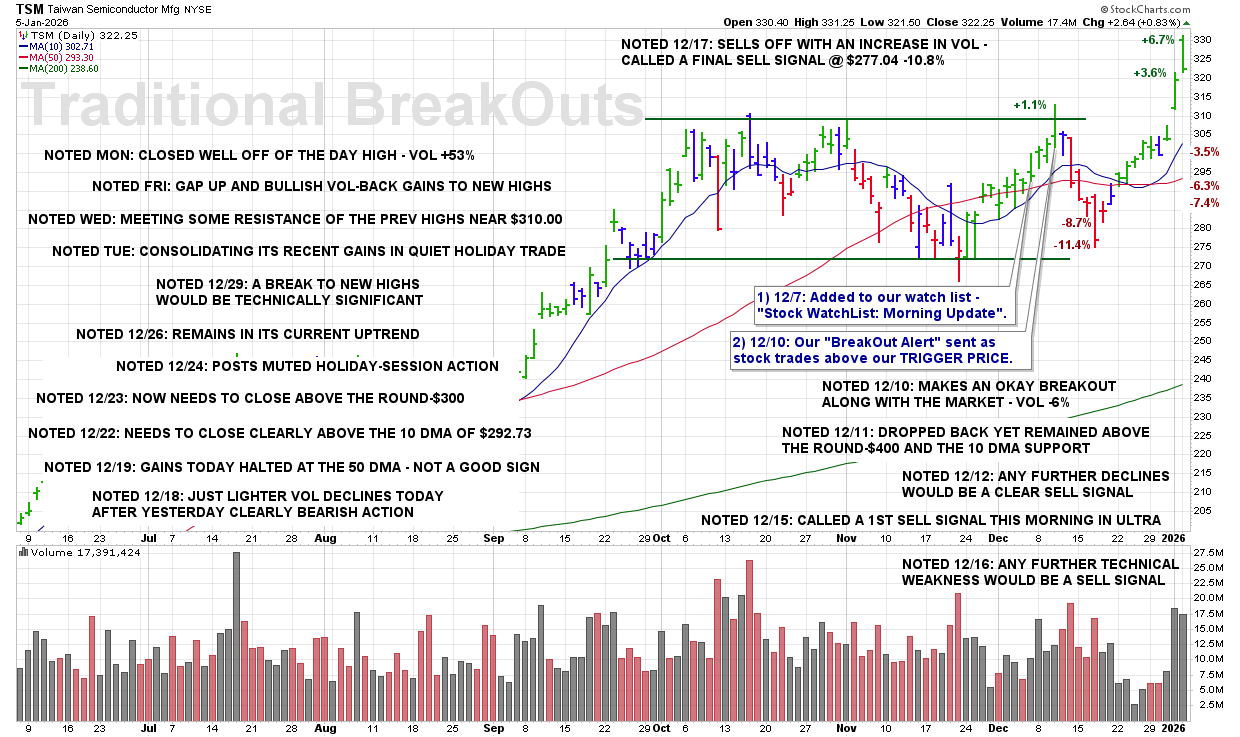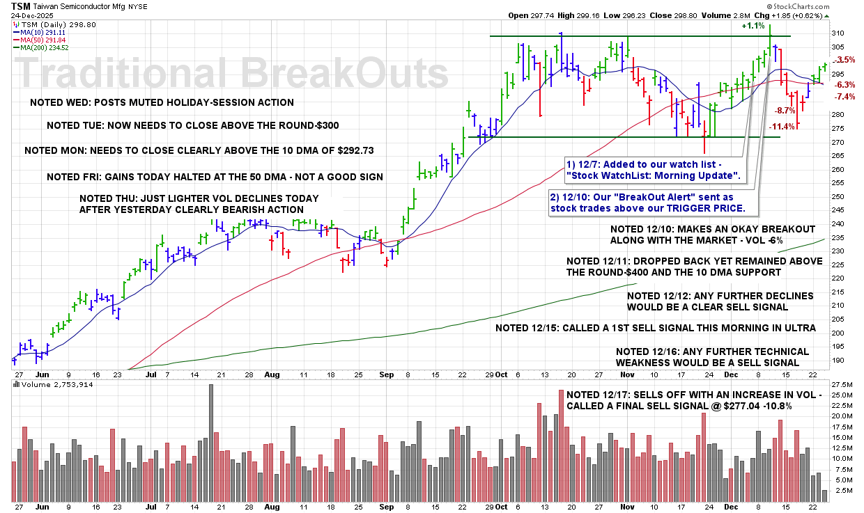 WED 12/17: TSM – CALLING A FINAL SELL SIGNAL (ALL) @ $277.04 -10.8%