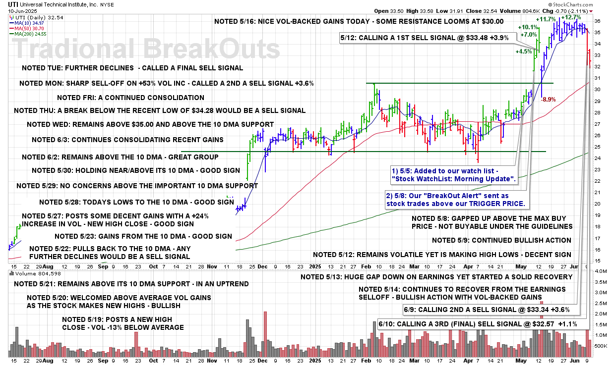 TUE 6/10: UTI – CALLING A 3RD (FINAL) SELL SIGNAL @ $32.57 +1.1%