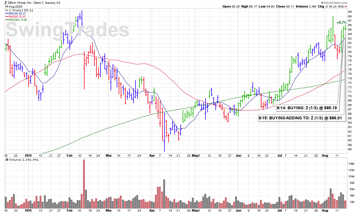 FRI 8/15: BUYING/ADDING TO: Z (1/3) @ $86.01