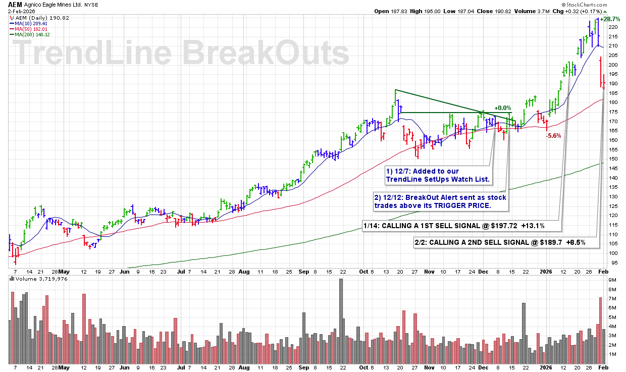 MON 2/2: AEM – CALLING A 2ND PROFIT TAKING SELL SIGNAL @ $189.7 +8.5%