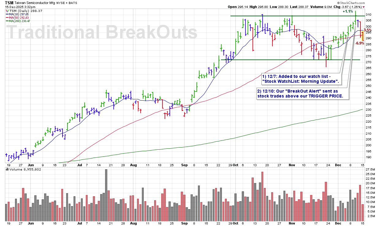 MON 12/15: TSM – CALLING A 1ST SELL SIGNAL @ $290.11 -6.5%
