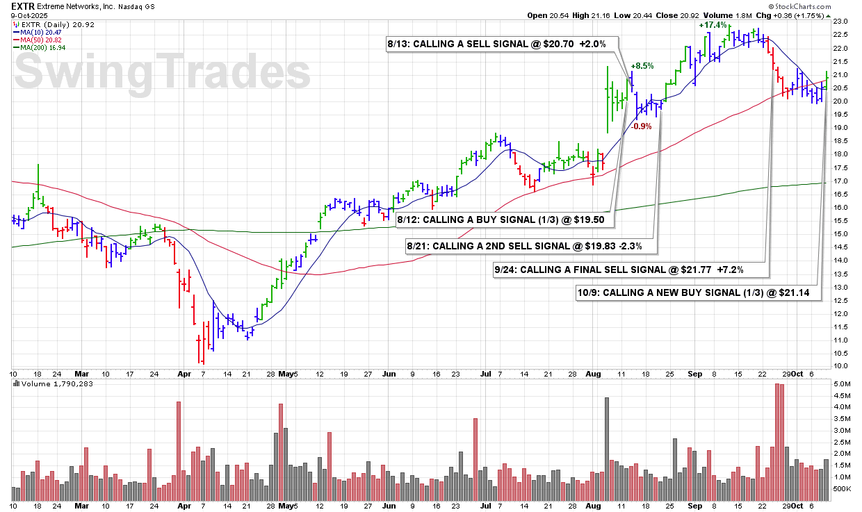 THU 10/9: EXTR – CALLING A NEW BUY SIGNAL (1/3) @ $21.14