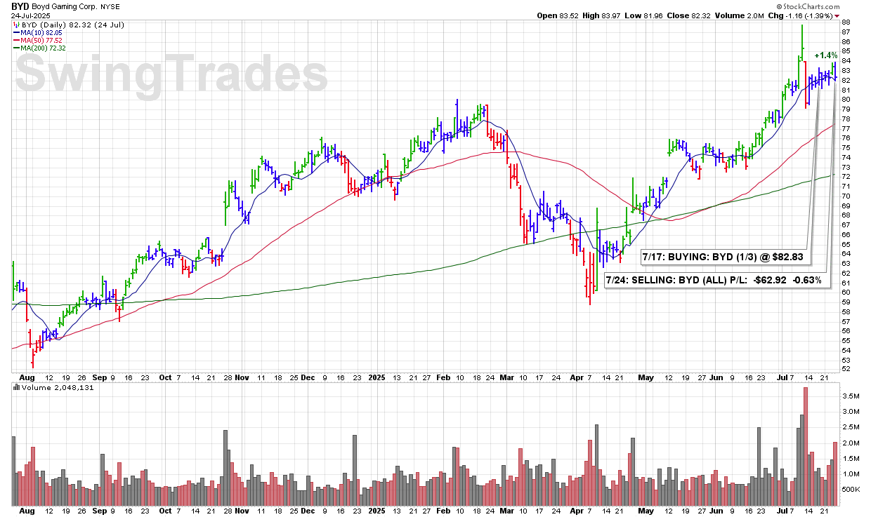 THU 7/24: SELLING: BYD (ALL) P/L: -$62.92 -0.63%