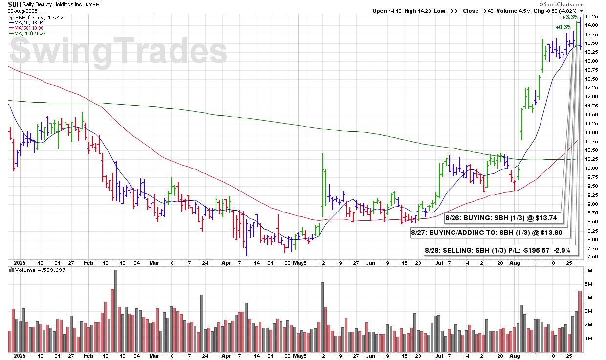 THU 8/28: SELLING: SBH (1/3) P/L: -$195.57 -2.9%
