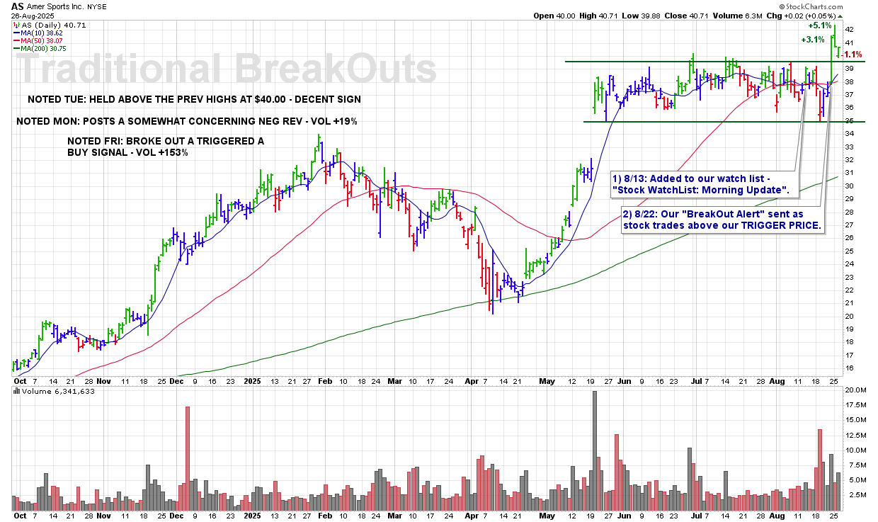 TUE 8/26: AS – Held Above The Prev Highs At $40.00 – Decent Sign