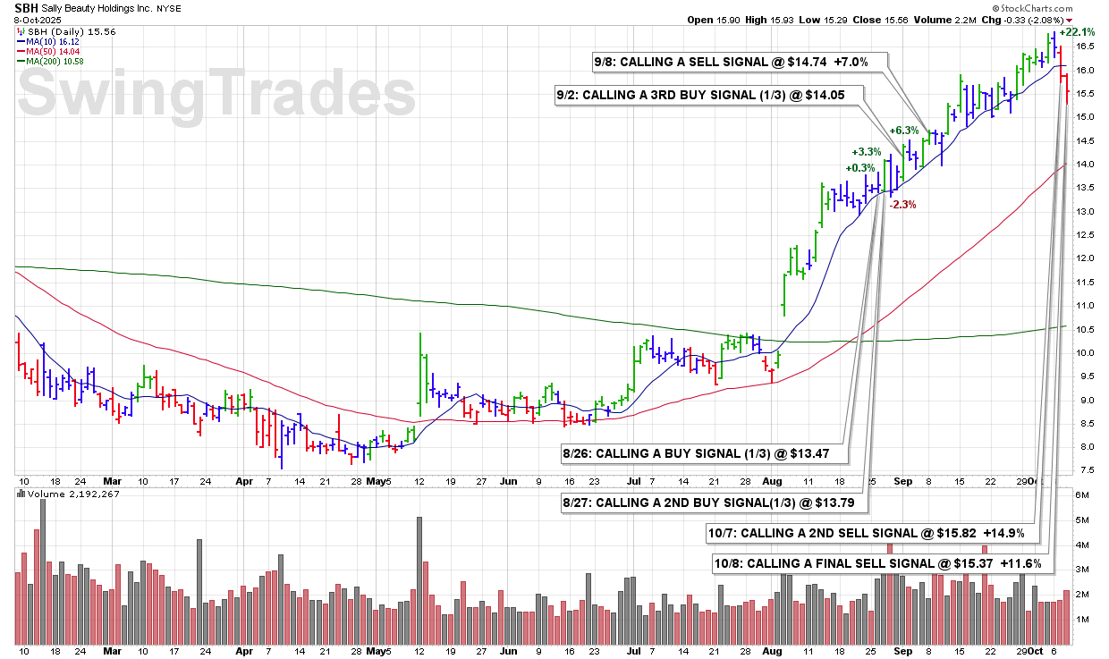 WED 10/8: SBH – CALLING A FINAL SELL SIGNAL @ $15.37 +11.6%
