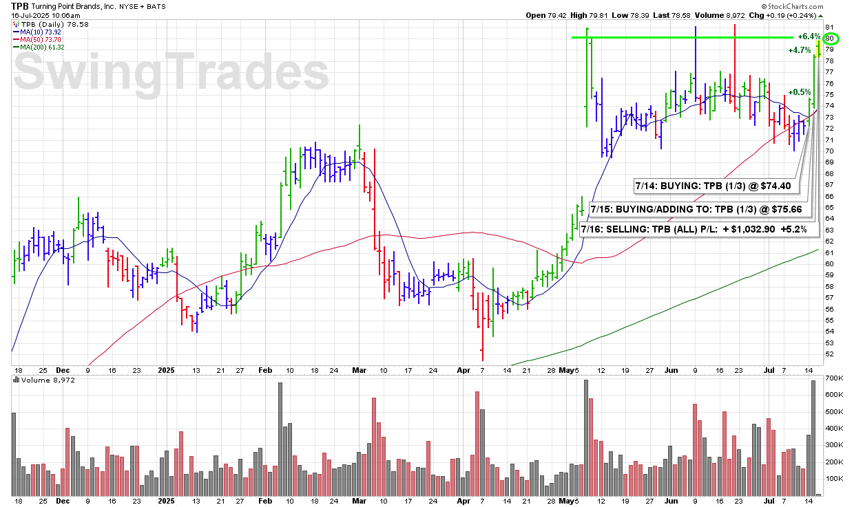 WED 7/16: SELLING: TPB (ALL) P/L: +$1,032.90 +5.2%