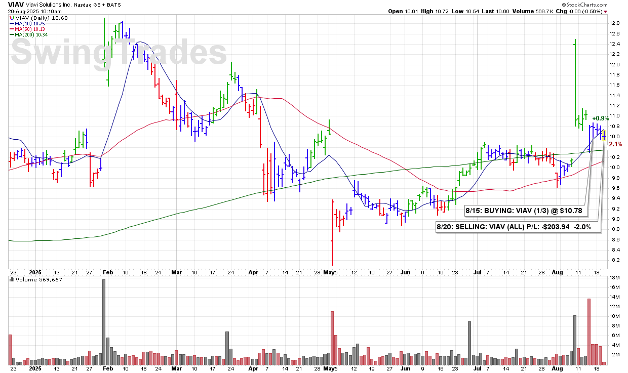 WED 8/20: SELLING: VIAV (ALL) P/L: -$203.94 -2.0%