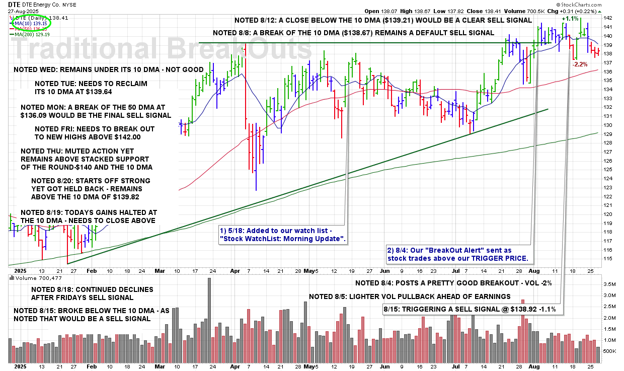 WED 8/27: DTE – Remains Under Its 10 DMA – Not Good