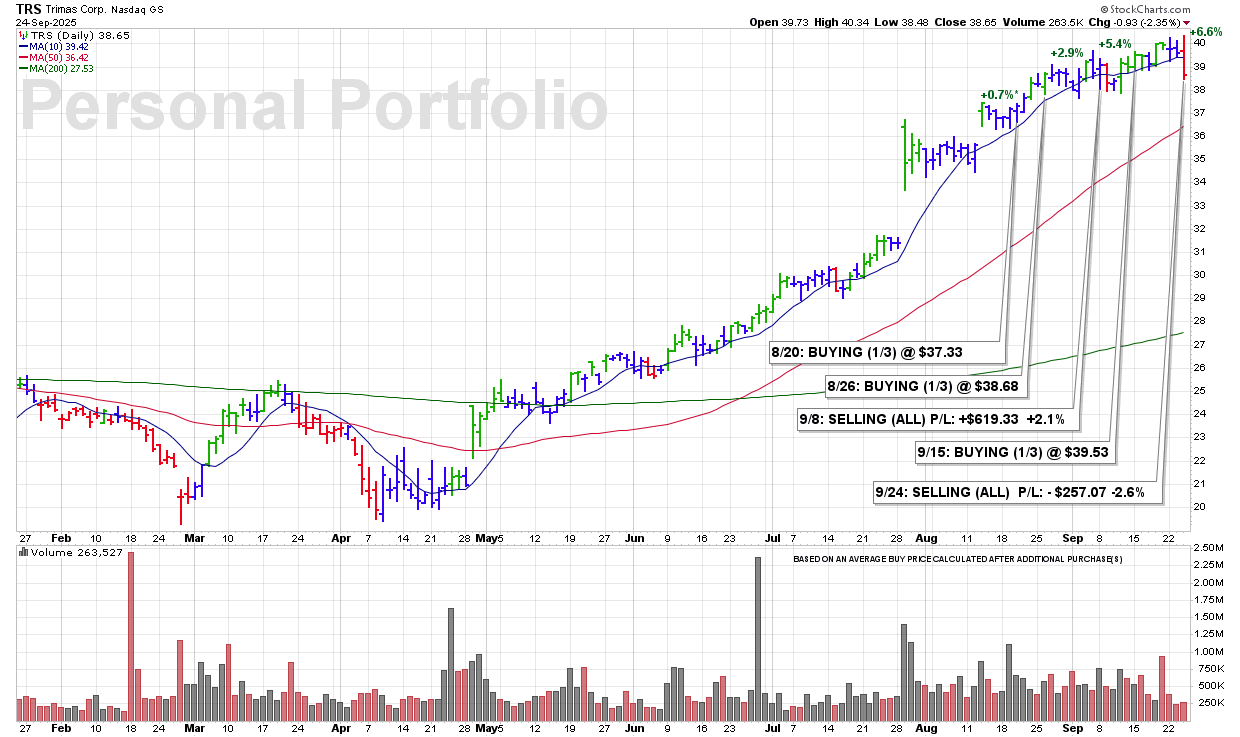 WED 9/24: TRS – SELLING (ALL) P/L: – $257.07 -2.6%